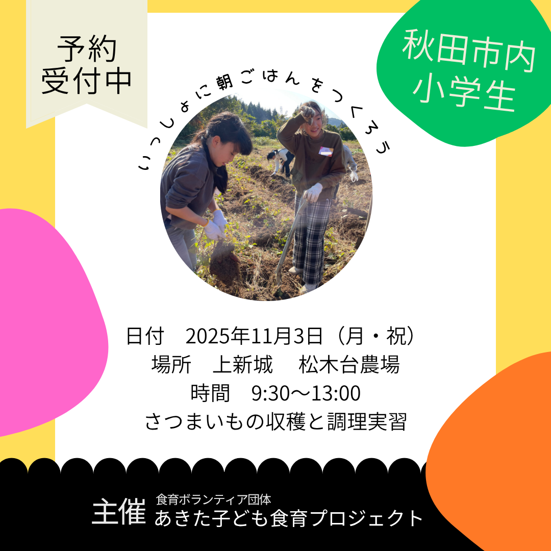 あきた子ども食育プロジェクトのホームページで1ヶ月前から募集を開始します。